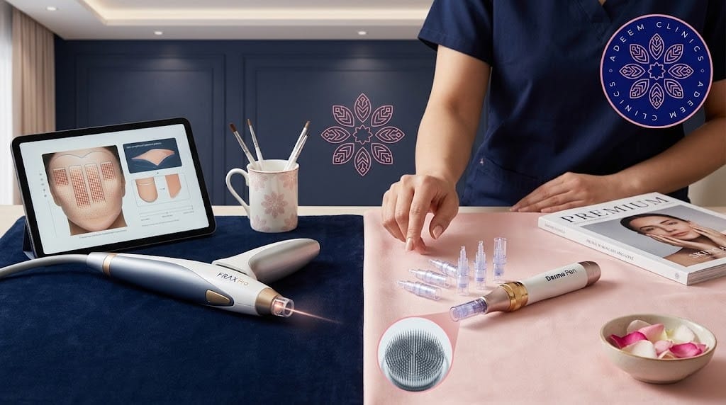في عيادات أديم لا يتم التعامل مع البشرة على أساس إجراء موحّد للجميع بل على أساس تقييم دقيق لما تحتاجه بشرتك فعلًا. وهذا مهم جدًا عندما تحتارين بين الديرما بن والفراكشنال أو تتساءلين: أيهما أفضل؟